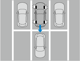 The Rear Crossing detection function detects approaching vehicles using the rear side radar sensors. If there is the possibility of your vehicle colliding with a vehicle approaching from the rear sides while you are driving in reverse, you are notified of possible danger by a warning sound and a warning indication on the display.