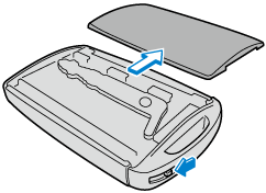 Insert a tape-wrapped flathead screwdriver into the gap and slide it in the direction of the arrow.