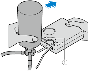 Install the bottle to the air compressor and press it in until the left and right tabs are engaged securely.