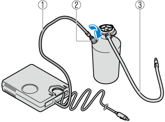 Make sure that the air compressor switch is off before inserting the air compressor hose to the injection valve of the bottle. If the air compressor hose is not installed to the injection valve of the bottle securely, the sealant may leak.
