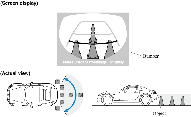 • The displayable range is limited. Objects under the bumper or around the bumper ends cannot be displayed.