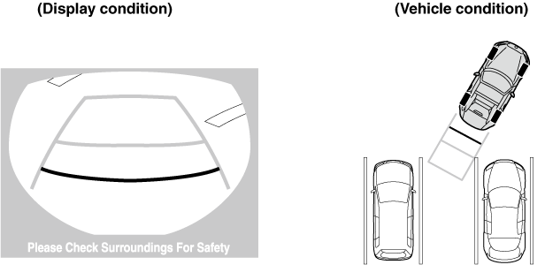 The operation of the rear view monitor when reversing the vehicle varies depending on the traffic, road, and vehicle conditions. The amount of steering and the timing also varies depending on conditions, so confirm the surrounding conditions directly with your eyes and steer the vehicle in accordance with the conditions.