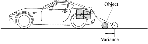 When there is a steep upgrade (downgrade) behind the vehicle, the object displayed on the screen appears farther (downgrade: closer) than the actual distance.