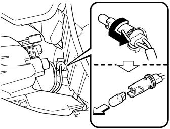 Turn the socket and bulb assembly counterclockwise and remove it.