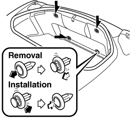 Pull the center of each plastic retainer and remove the retainers and the trunk end trim.