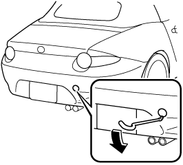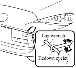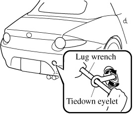 If the tiedown eyelet is not securely tightened, it may loosen or disengage from the bumper when tying the vehicle. Make sure that the tiedown eyelet is securely tightened to the bumper.