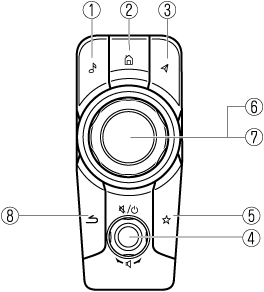 Volume knob: Volume adjustment Adjust the volume by turning the volume knob. If you adjust the volume during voice guidance, the volume of the voice guidance will change. If you adjust the volume during a hands-free call, the conversation volume will change. Press the volume knob to mute/pause the audio. Press the knob again to resume.