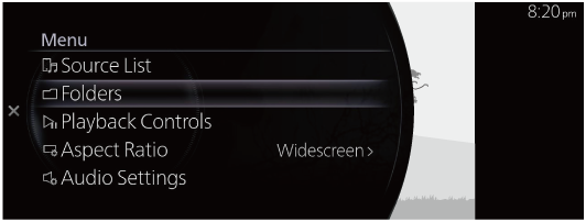 Displays the Folders screen. Displays the folder list where you can select the video you want to play from the folder. For the selection method, refer to Selecting videos from a folder. If there is no folder, the folder selection screen is omitted and it moves to the file selection screen. |