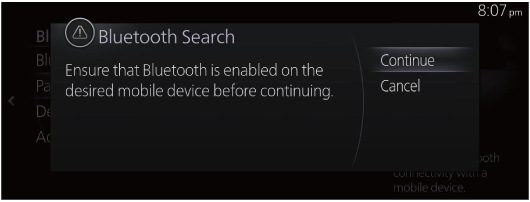 Check the content on the displayed Bluetooth Search screen and select “Continue”.