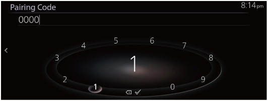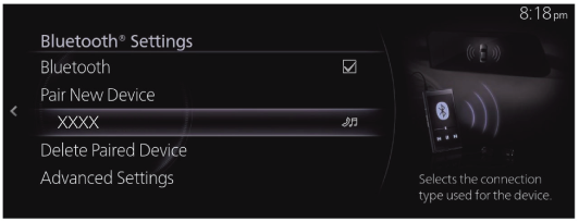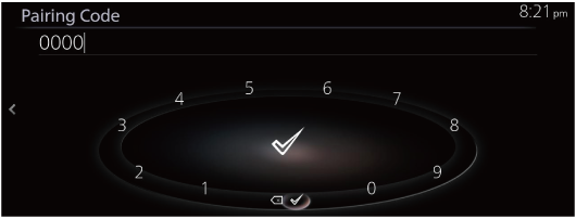 Select “Mazda” displayed in the search result list of the Bluetooth® device and confirm the passcode or input the passcode.