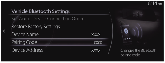 The connection of already paired Bluetooth® devices is unaffected even if the Pairing Code is changed.