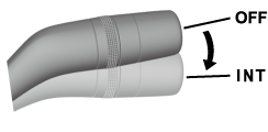 In the LO position, the windshield wipers operate at low speed. In the HI position, the wipers operate at high speed.