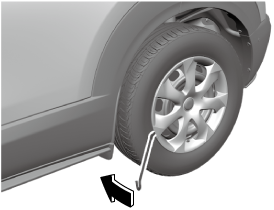If your vehicle is equipped with a wheel cover, pry off the wheel cover with the beveled end of the jack lever.