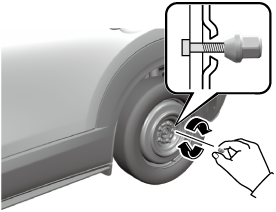 Loosen the lug nuts by turning them counterclockwise one turn each, but do not remove any lug nuts until the tire has been raised off the ground.