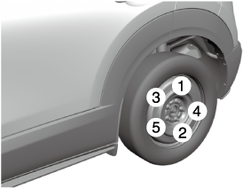 Use the lug wrench to tighten the nuts in the order shown.
