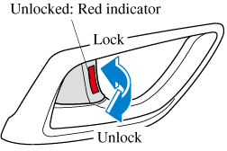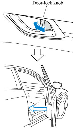 To lock any door using its door-lock knob from the outside, press the door-lock knob to the lock position and close the door (holding the door handle in the open position is not required).
