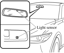 • The auto-dimming function is canceled when the ignition is switched ON and the selector lever is in the R position.