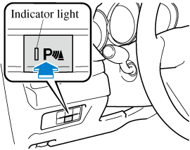 When the ignition is switched ON with the parking sensor activated, the indicator light turns on.