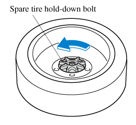 Store the spare tire in the reverse order of removal. After storing, verify that the spare tire is stored securely.