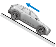 Do not release your foot from the brake pedal while the vehicle is stopped on a steep grade: