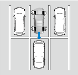 The Rear Crossing detection function detects approaching vehicles using the rear side radar sensors. If there is the possibility of your vehicle colliding with a vehicle approaching from the rear sides while you are driving in reverse, you are notified of possible danger by a warning sound and a warning indication on the display.