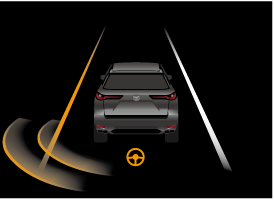 Furthermore, if the possibility of a road departure increases, a screen display and a warning sound notify the driver of the danger. Operate the steering wheel according to the screen display.