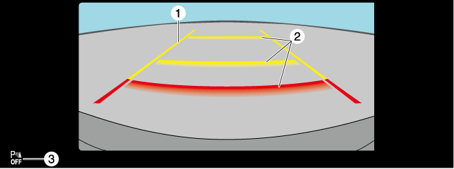 Indicates the approximate width of the vehicle. Does not display when the steering wheel is operated in a straight-ahead position. |