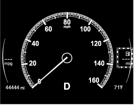 The maximum driving distance is calculated and displayed based on the current remaining fuel tank level and the fuel economy. When the maximum driving distance is 50 km (30 miles) or farther, the maximum driving distance indication decreases in 10 km (10 mile) increments, and when the maximum driving distance is 50 km (30 miles) or shorter, it decreases in 1 km (1 mile) increments.