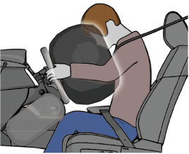 When air bag crash sensors detect a frontal impact of greater than moderate force, the driver's air bag inflates quickly helping to reduce injury mainly to the driver's head or chest caused by directly hitting the steering wheel.