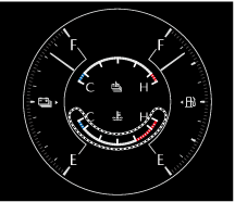 When the tachometer needle enters the STRIPED ZONE, this indicates to the driver that the gears should be shifted before entering the RED ZONE.