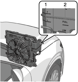 Securely tighten the coolant reservoir tank cap after adding coolant.