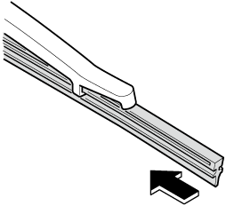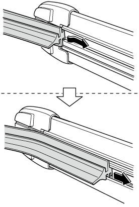 3. Slide the blade component in the direction of the arrow while pressing the wiper arm tab to remove the blade component from the wiper arm.