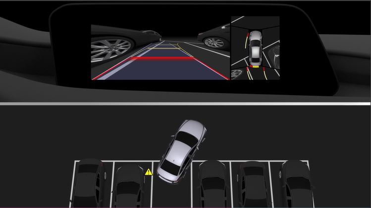 Displays an image of the vehicle as if it were viewed from directly above to assist in checking the area around the vehicle when driving forward or in reverse.