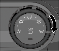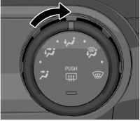 One of the functions of the air conditioner is dehumidifying the air and, to use this function, the temperature does not have to be set to cold. Therefore, set the temperature control dial to the desired position (hot or cold) and turn on the air conditioner when you want to dehumidify the cabin air.