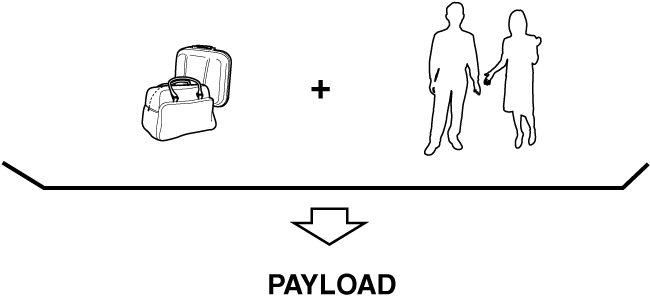 The cargo weight limit with two occupants is 385 kg (849 lbs) - (68 × 2) kg ( (150 × 2) lbs) = 249 kg (549 lbs)