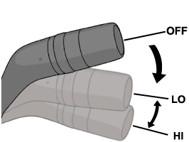 In the LO position, the windshield wipers operate at low speed. In the HI position, the wipers operate at high speed.
