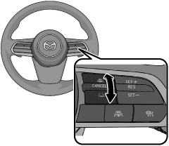 If the distance between vehicles control is disabled using Mazda Connect, the system switches to the cruise control. At this time, the MRCC switch functions as the cruise control switch.