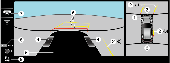 The 360° view monitor is a system which assists the driver in checking safety by displaying the conditions around the vehicle on the center display when the vehicle is driven at low speeds or when the vehicle is parked or stopped.