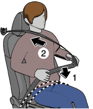 If the belt is locked and cannot be pulled out, retract the belt once, and then try pulling it out slowly. If this fails, pull the seat belt strongly one time and loosen it, then pull it out again slowly.