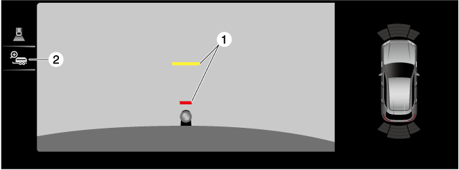 Indicates the approximate projected path of the vehicle. The projected vehicle path lines move in conjunction with the steering wheel operation. |