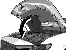 Remove the strap when opening/closing the hood. If the hood is opened/closed while the strap is engaged, the strap or hook may be damaged.