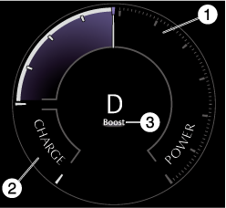 Displays the energy charged in the high voltage battery by regenerative braking. The higher the charge, the more the power meter needle moves downward.