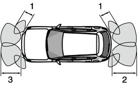 Depending on the type of target object and surrounding conditions, the distance at which the ultrasonic sensors can detect target objects may be shortened or the target objects may not be detected. Always confirm the safety around the vehicle visually when driving.