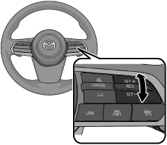 If the distance between vehicles control is disabled using Mazda Connect, the system switches to the cruise control. At this time, the MRCC switch functions as the cruise control switch.