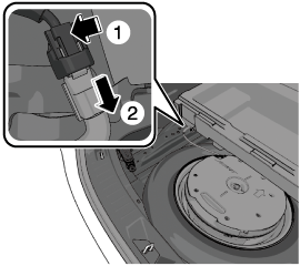 Turn the spare tire hold-down bolt counterclockwise and remove the sub-woofer and the spare tire.