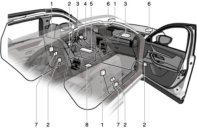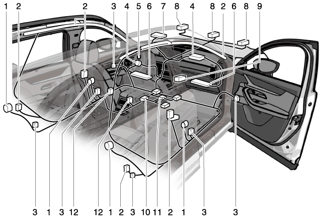 Capteur de capotage, détecteurs de choc, et module de diagnostic (unité SAS)