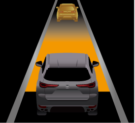Le système détermine que la distance par rapport au véhicule qui précède est courte.