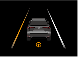 En outre, si la possibilité d'une sortie de route augmente, un affichage sur l'écran et un signal sonore avertissent le conducteur du danger. Actionner le volant en fonction de l'affichage de l'écran.