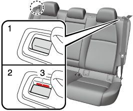 If the red indication is visible, it means the seatback is not locked. If the vehicle is driven without the seatback locked, it could fold down suddenly and cause an accident.