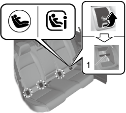 The ISOFIX/LATCH*1 lower anchors marking on the cover indicates the position of the ISOFIX/LATCH*1 lower anchors for the attachment of a child-restraint system.